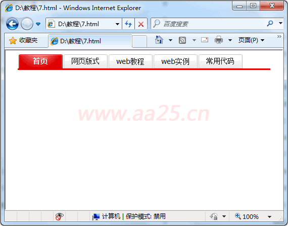 背景圖片也是網(wǎng)頁制作當(dāng)中最常用的樣式之一,運(yùn)用好背景圖片,可以使你的頁面更加出色,更加人性化和更快的加載速度。下面還是用以前視頻教程中的實(shí)例進(jìn)行講解,或者直接去看視頻教程http://www.aa25.cn/div_css/895.shtml。顯示效果如下: